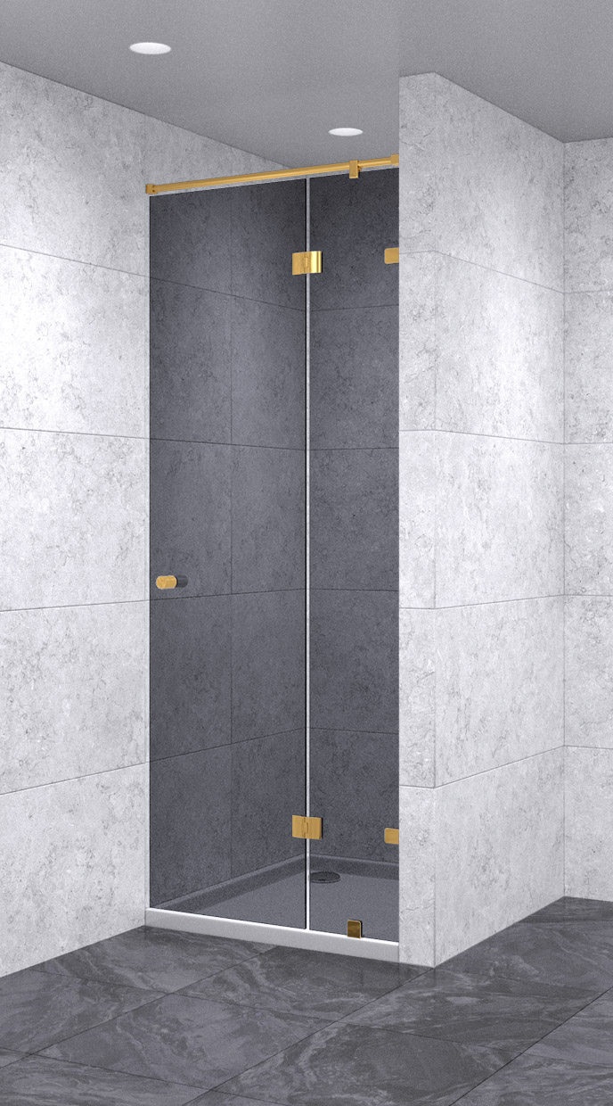 Душевая дверь в нишу с добором распашная 1000х1600 тонированная, профиль золото