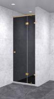 Душевая дверь в нишу с добором распашная 700х1700 черная, профиль золото
