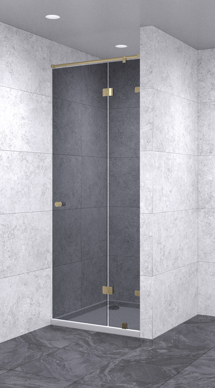 Душевая дверь в нишу с добором распашная 700х1800 тонированная, профиль бронза