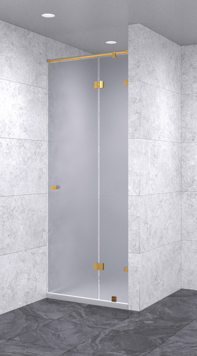 Душевая дверь в нишу с добором распашная 700х2000 матовая, профиль золото