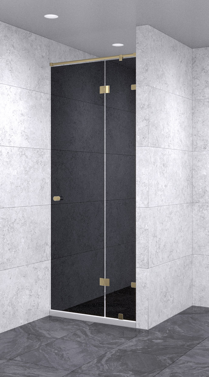 Душевая дверь в нишу с добором распашная 700х2200 черная, профиль бронза