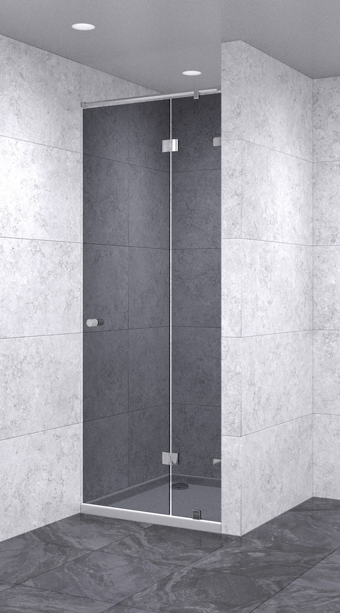 Душевая дверь в нишу с добором распашная 900х2000 тонированная, профиль хром