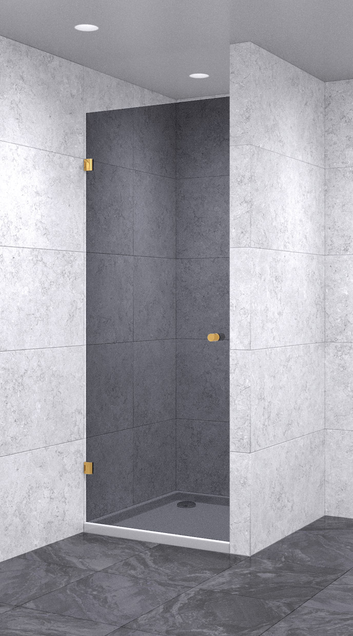 Душевая дверь в нишу распашная 800х2000 тонированная, профиль золото
