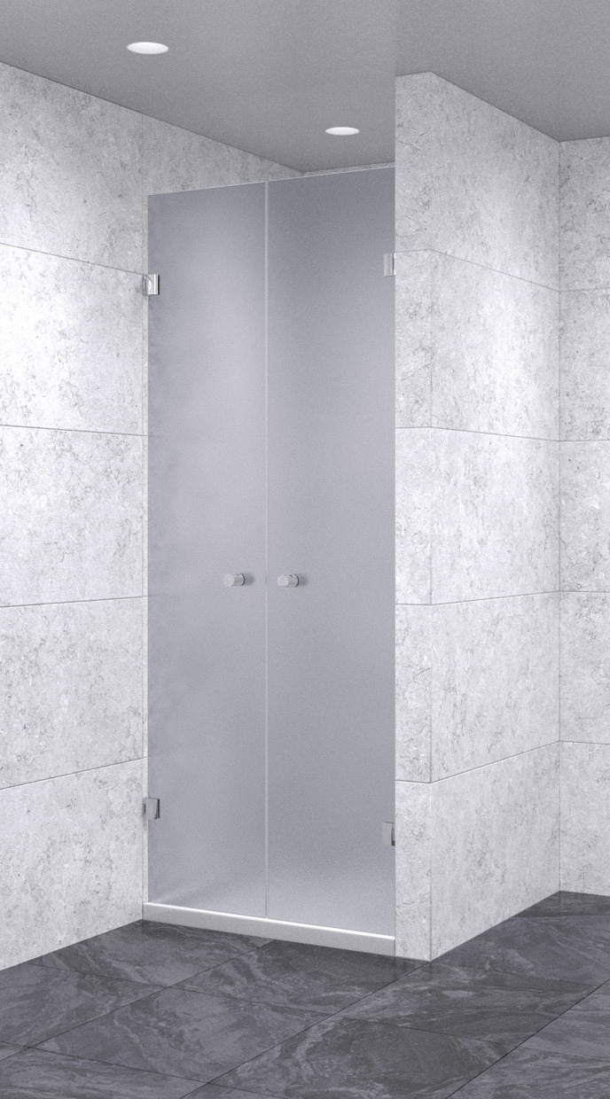 Душевая дверь в нишу распашная двойная 600х600х1600 матовая, профиль хром