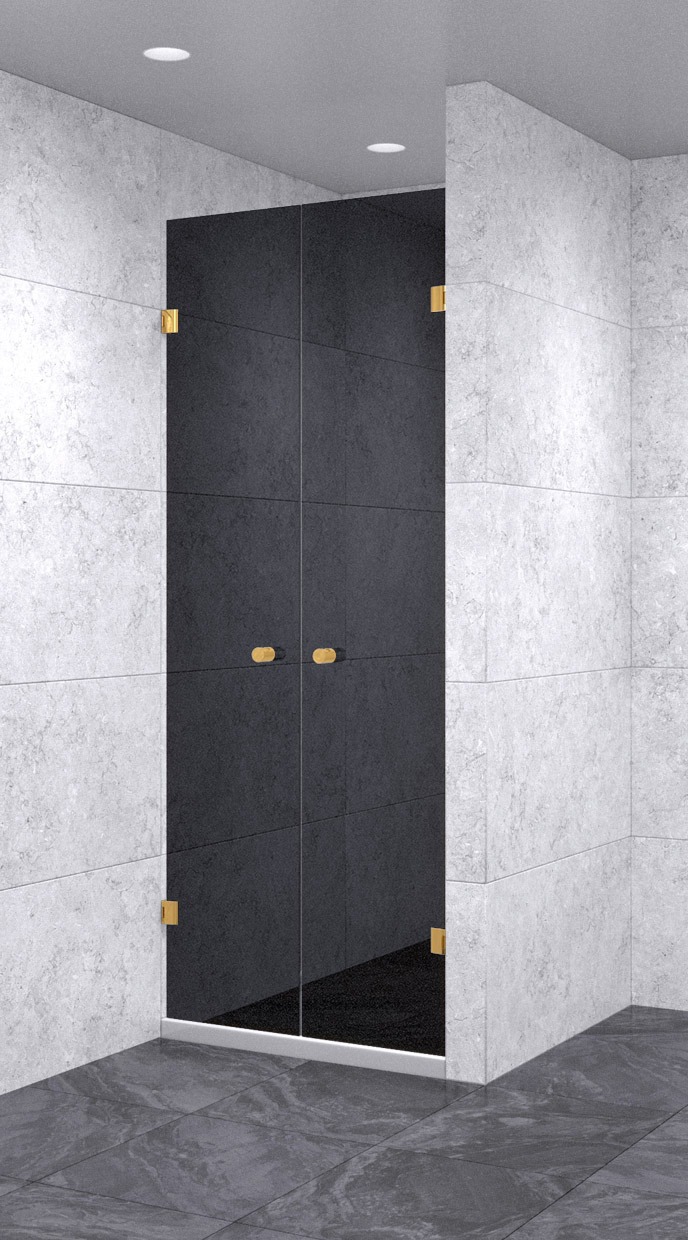 Душевая дверь в нишу распашная двойная 800х800х1600 черная, профиль золото