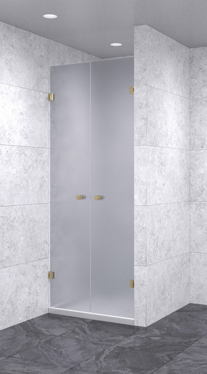 Душевая дверь в нишу распашная двойная 800х800х1600 матовая, профиль бронза
