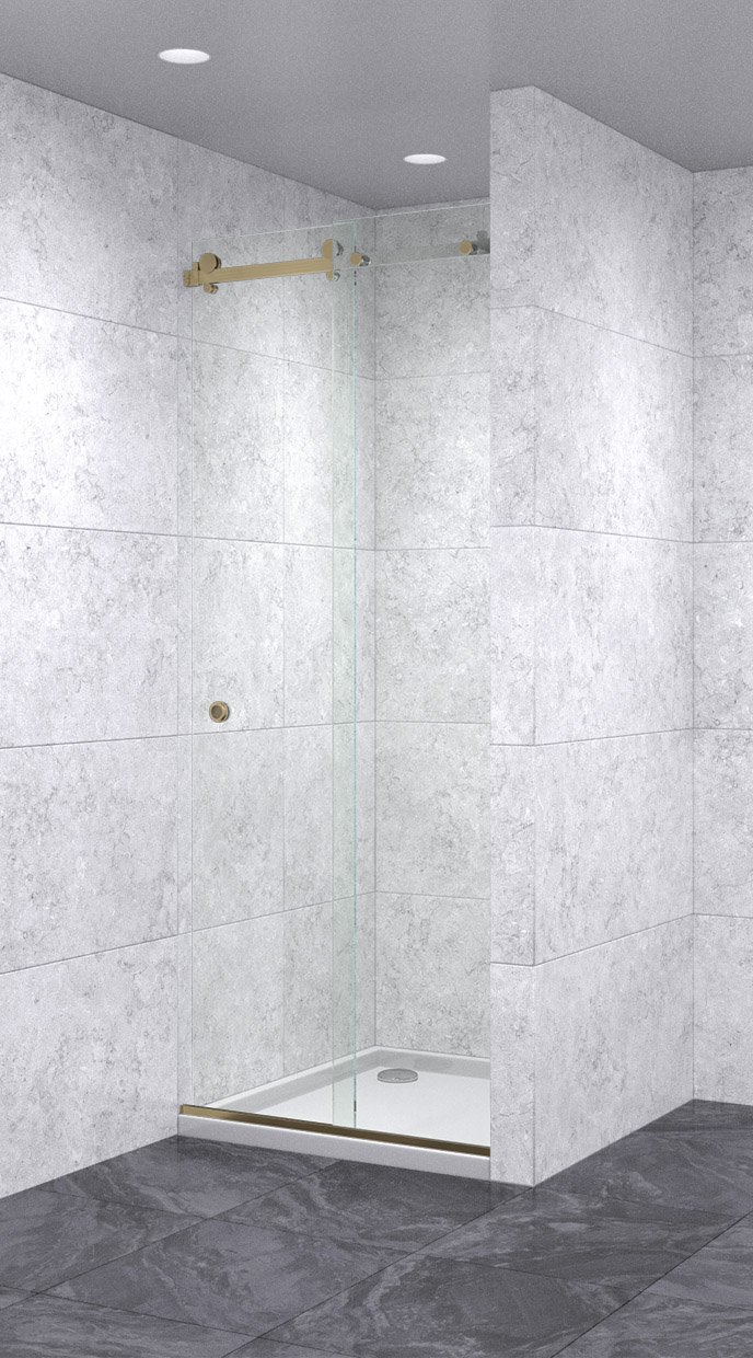 Душевая дверь в нишу раздвижная 450х450х1600 бесцветная, профиль бронза