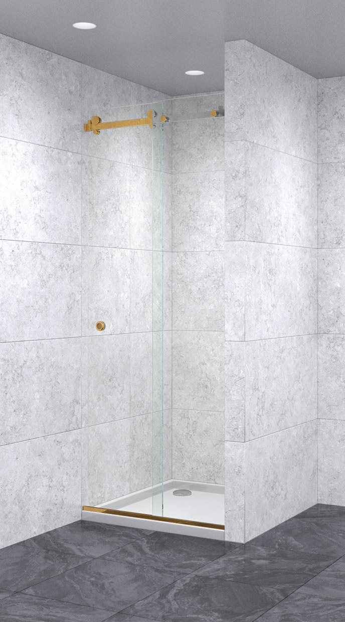 Душевая дверь в нишу раздвижная 550х550х1900 бесцветная, профиль золото