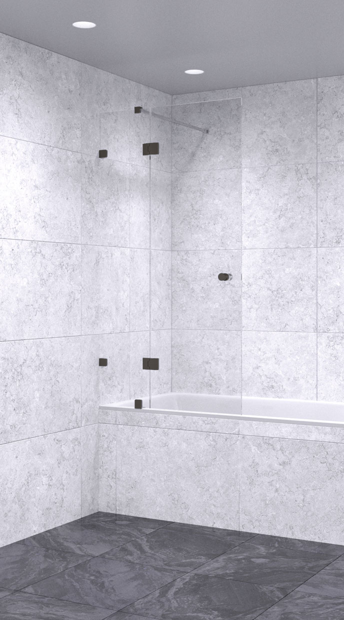 Шторка на ванну 1100х1900 осветленная, профиль черный
