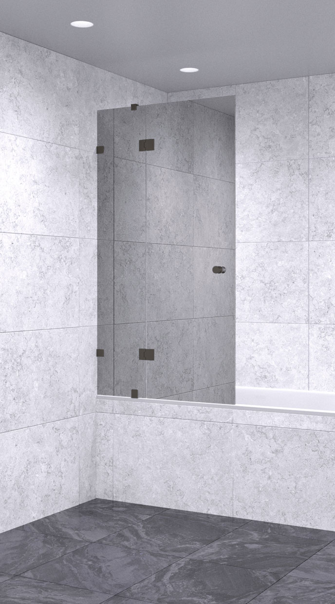Шторка на ванну 700х1900 зеркальная, профиль черный